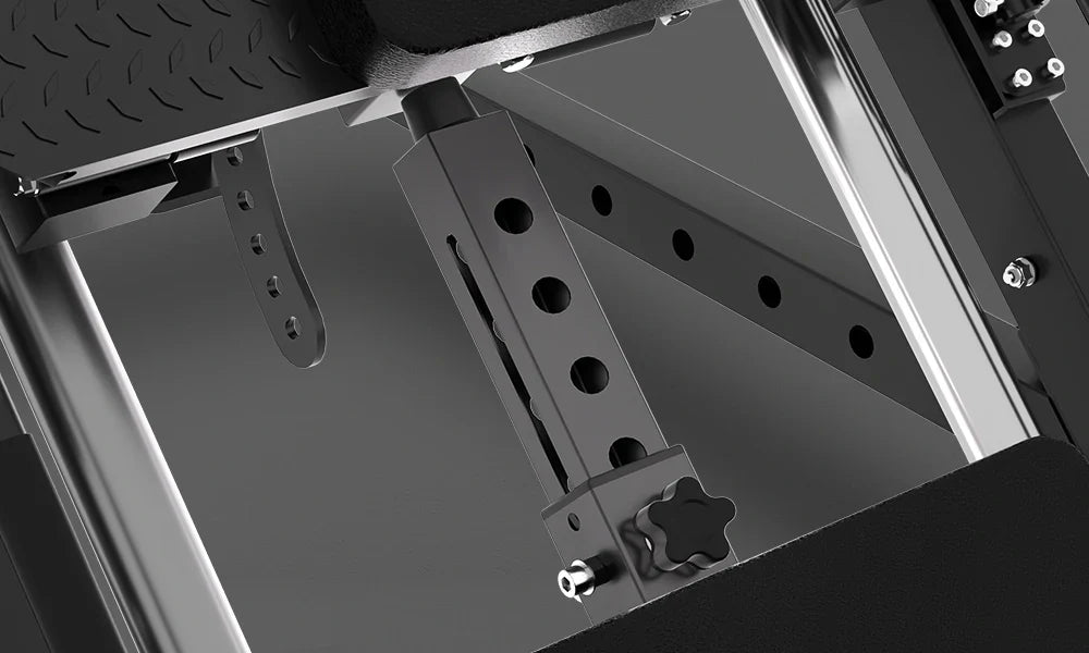 The foot pedals are adjustable to multiple angles, ensuring a customized and ergonomic training experience. The hack squat pedal offers four angles, and the leg press pedal offers six. This allows for precise adjustments that improve comfort, balance, and performance during every workout.