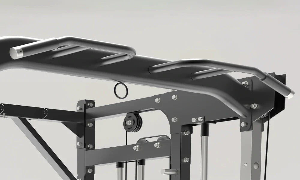The Ritkeep PMAX 5600 Home Gym Smith Machine is the top model in our Premium series. It combines six strength training machines in ONE: power cages, crossover system, Smith machine, pull-up station, dip station, and low row . This makes it perfect for training multiple muscle groups and providing comprehensive workouts without changing equipment!
