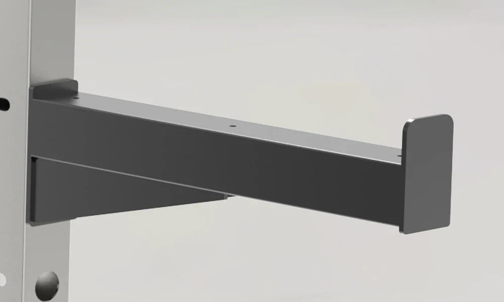 - Safety spotter arms: With a rubberized surface to minimize the risk of injury or accidents and to catch the barbell if it falls. Serve as an emergency support during exercises.