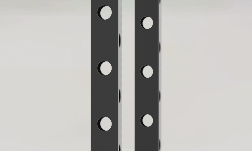 - Robust construction: Made of 50 x 50 mm 14-gauge steel , the rack supports a load of up to 544 kg. It features 100 mm hole spacing and 26 mm bolt holes, ensuring safety and stability during training.
