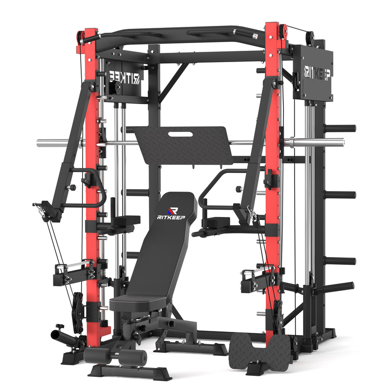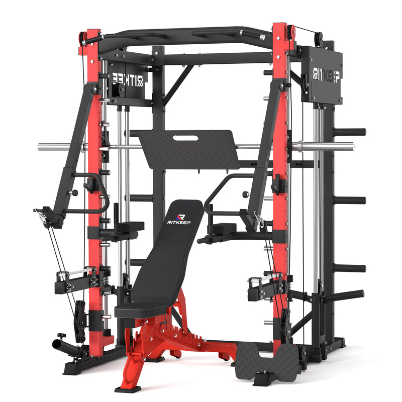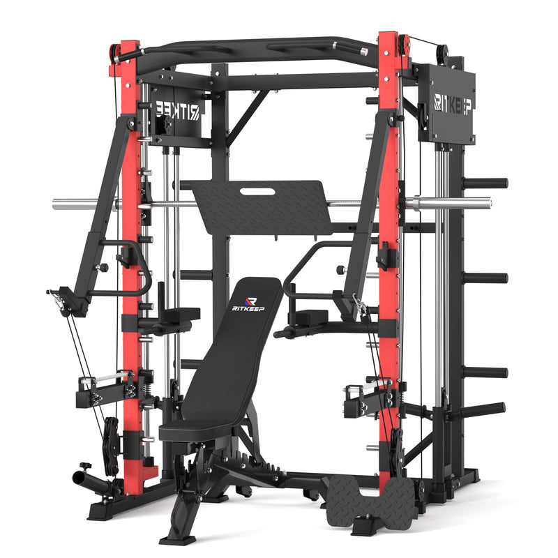 - Mit eingebauter Langhantel und Verriegelungsmechanismus. Die sanfte, geführte Bewegung und die Sicherheitsfunktionen machen es ideal für das Training grundlegender Übungen.