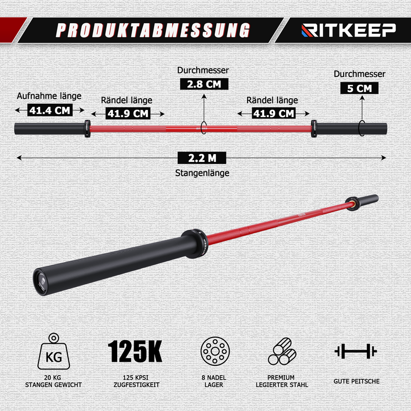 RitKeep 1,2M Olympische Langhantelstange für Powerlifting