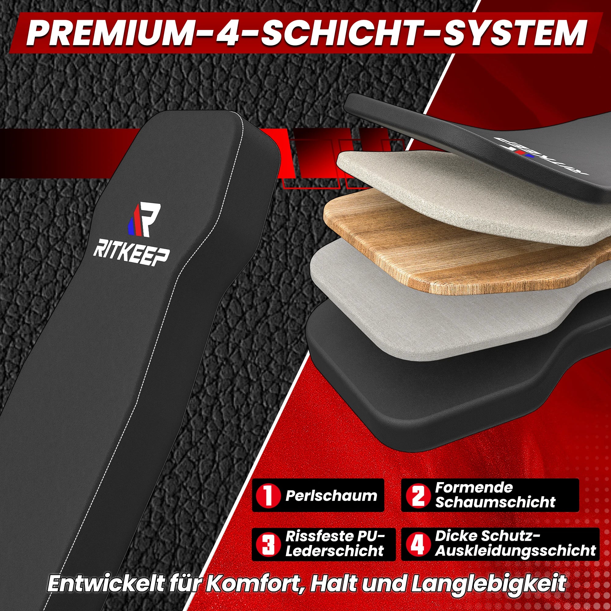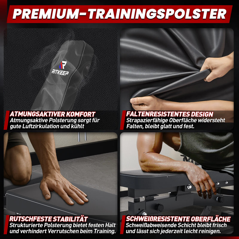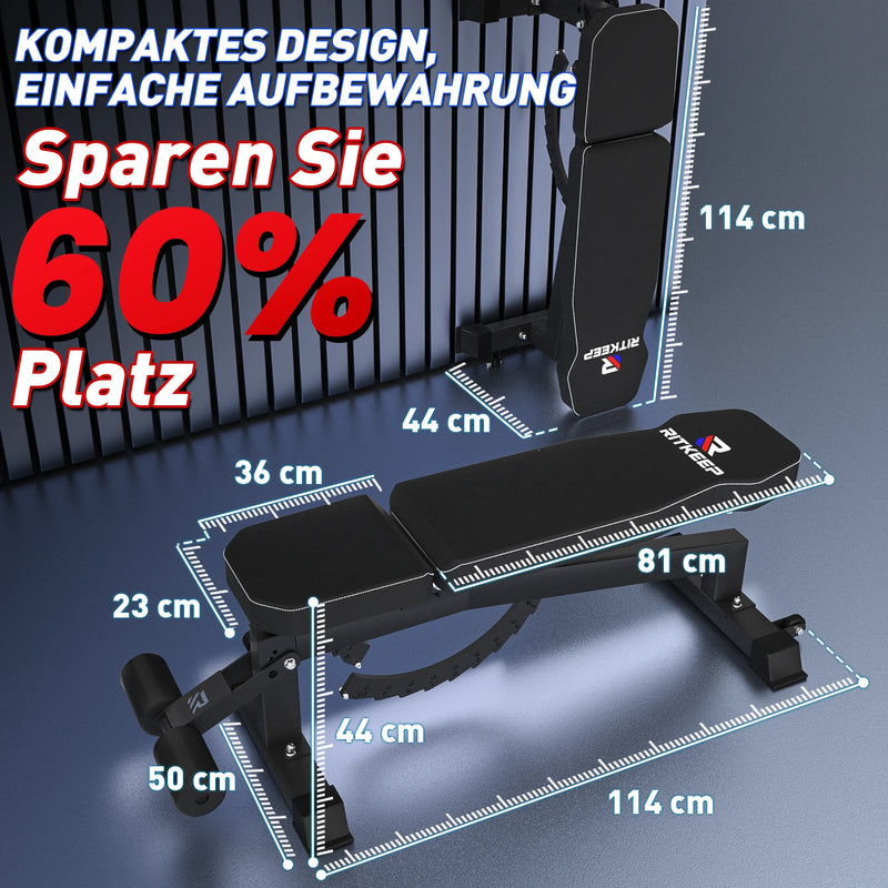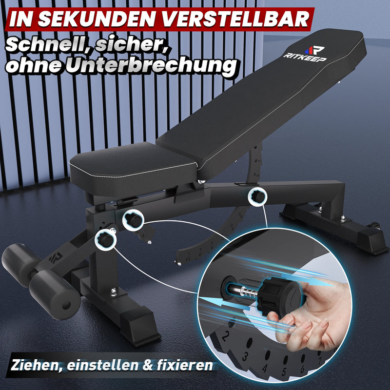 Optimize your workout with the RitKeep RAB-2000 adjustable fitness bench, featuring 11 backrest and 3 seat positions. The quick-lock system allows for easy adjustments, making it ideal for bench presses, flyes, sit-ups, and more—for a versatile muscle workout.