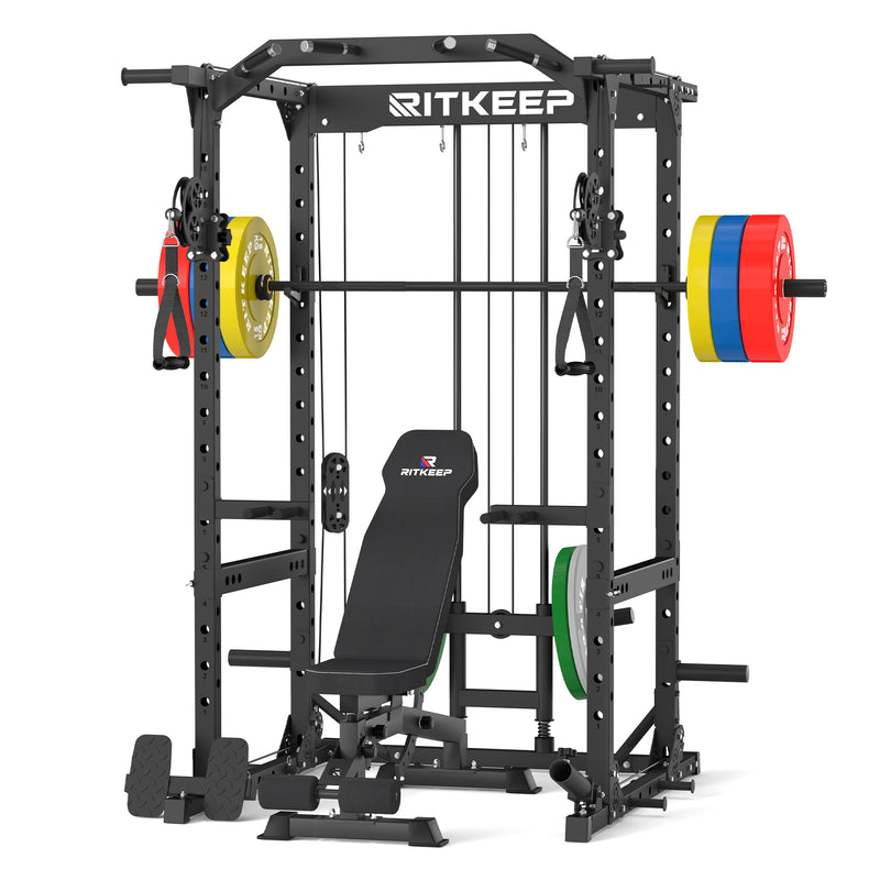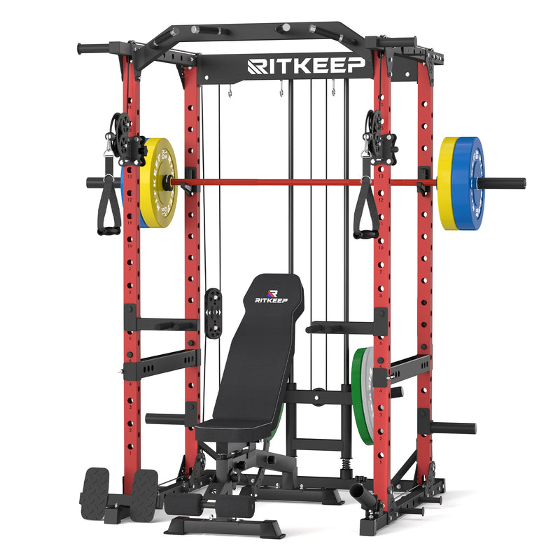 Das RitKeep Destroyer M10 Power Rack Fitnessgeräte-Paket ist die perfekte Ergänzung für ein kompaktes Home-Gym. Das Destroyer M10 kombiniert Power Rack, Kabelzug-Crossover, Dip-Station, Klimmzugstation und Gewichtshalterung in einem Gerät und ermöglicht so ein umfassendes Ganzkörpertraining zu Hause. Mit einem Lochabstand von 101 mm und 25-mm-Pinlöchern sowie lasergravierten Markierungen an jedem Loch lässt sich das Setup präzise und schnell einstellen.